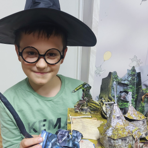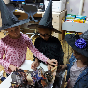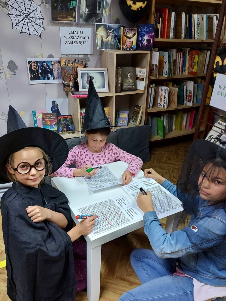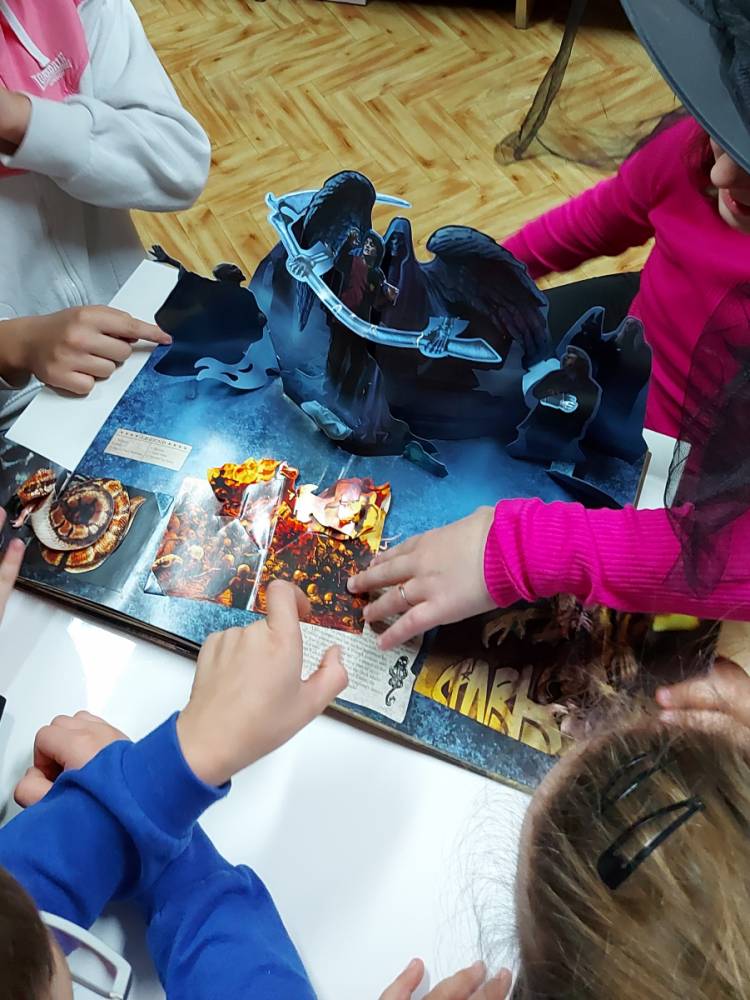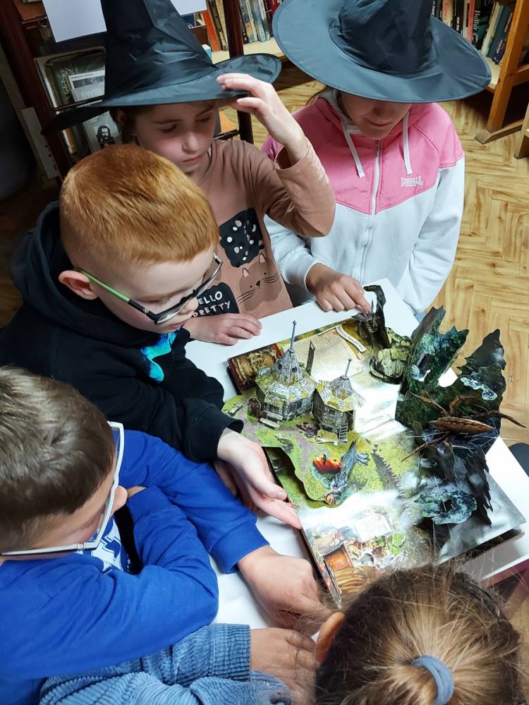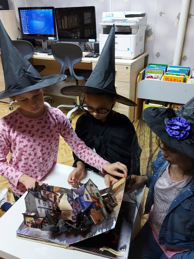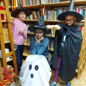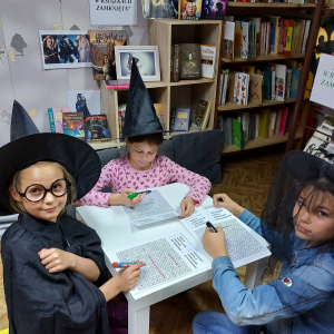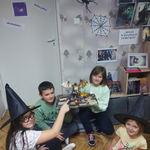 28 października w bibliotece zapanowały czarodziejskie klimaty. Przenieśliśmy się w niezwykły świat czarów i magii. Dzieci przebrane za czarodziejów dostarczyły dużo dobrej zabawy. Prym wiodła angielska wersja książki "Harrego Pottera", która swoimi ilustracjami opowiadała całą historię. Ale najważniejsze, by nutę magii i tajemniczości nie traktować zbyt poważnie, lecz tylko jako dobrą zabawę.