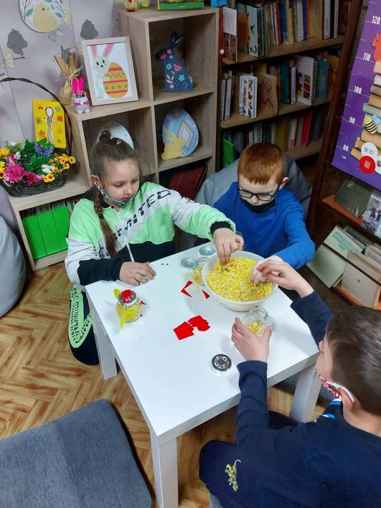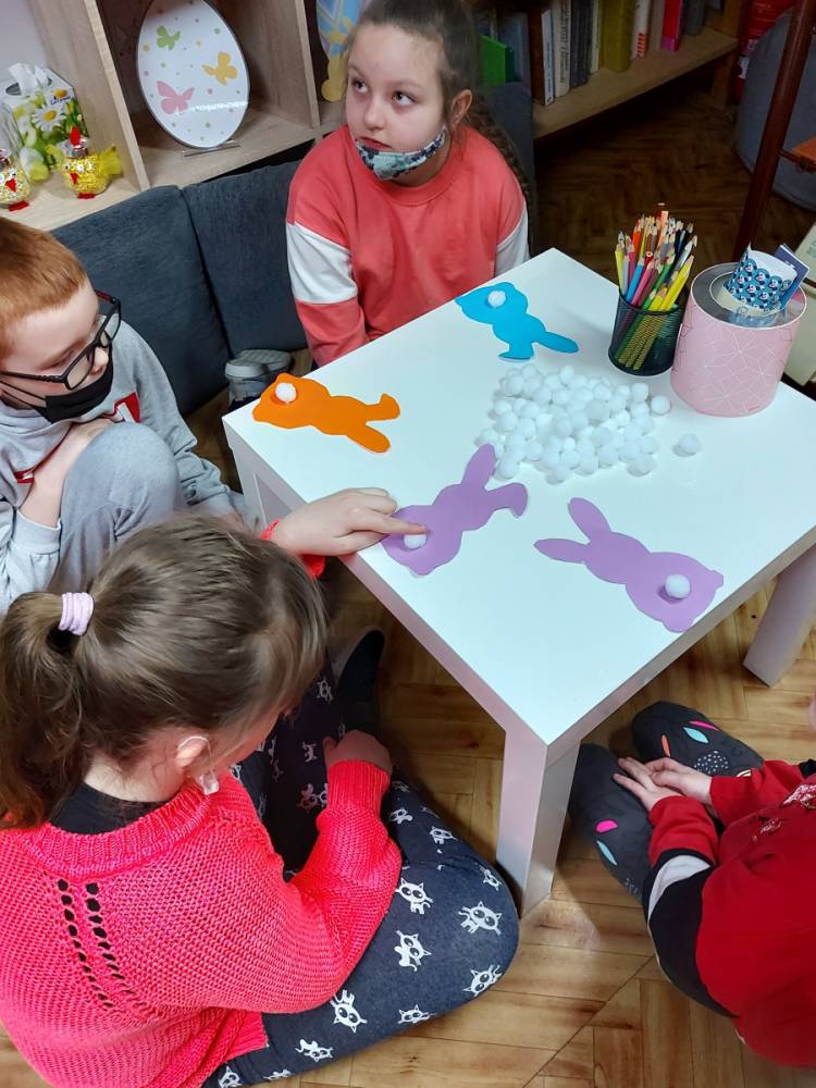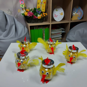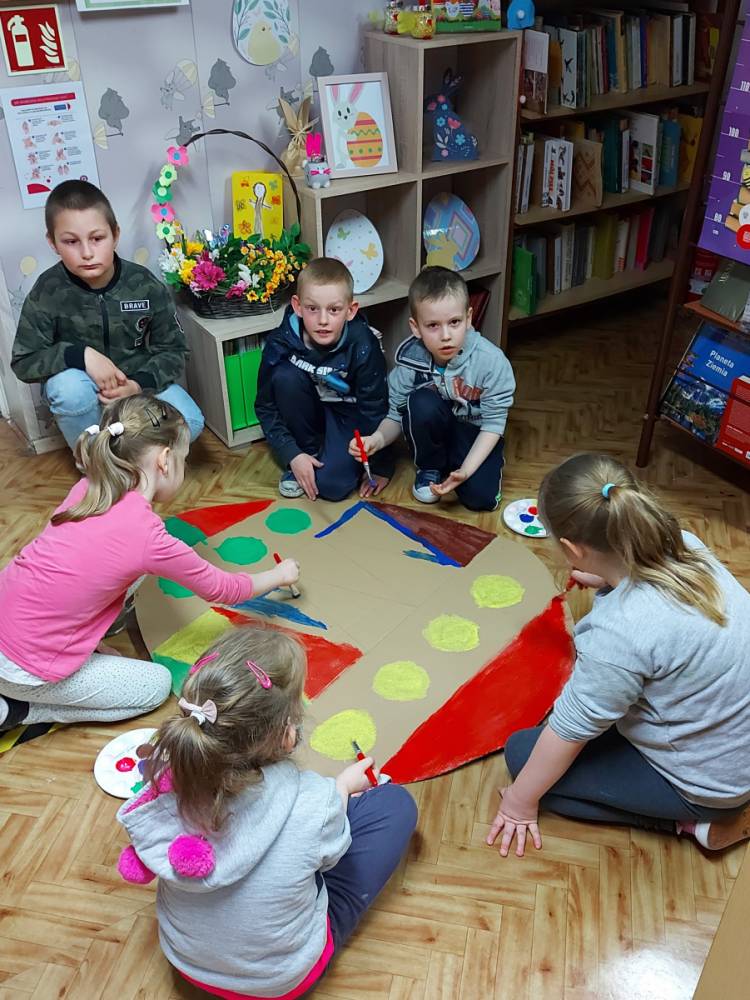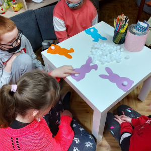 Opowiastki o tradycjach i symbolach wielkanocnych - dyskusja. Oraz twórcza i niezwykle lubiana przez dzieci zabawa jaką są zajęcia plastyczne. Nie muszą być skomplikowane, a i tak dostarczą dużo radości.