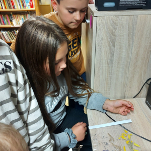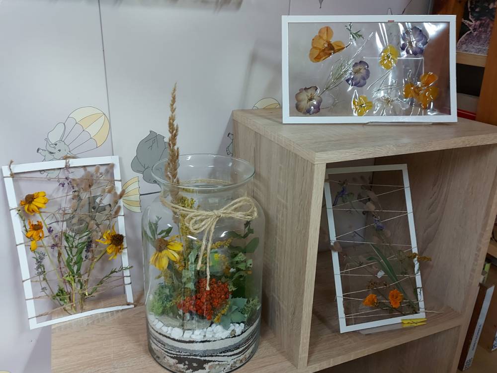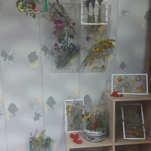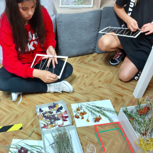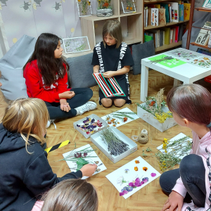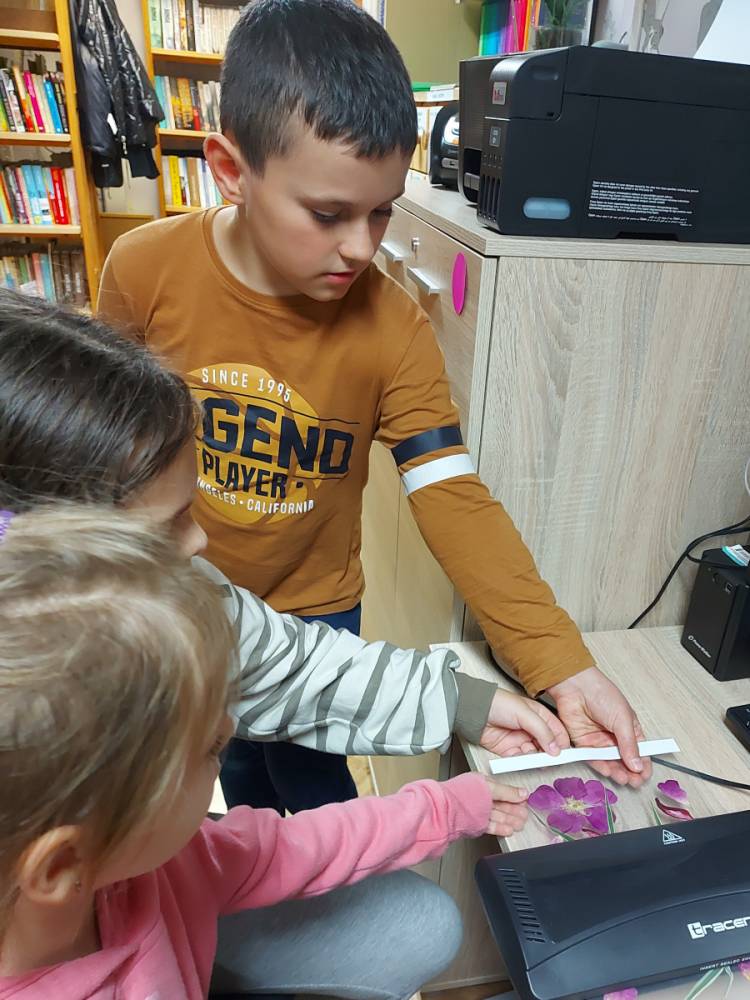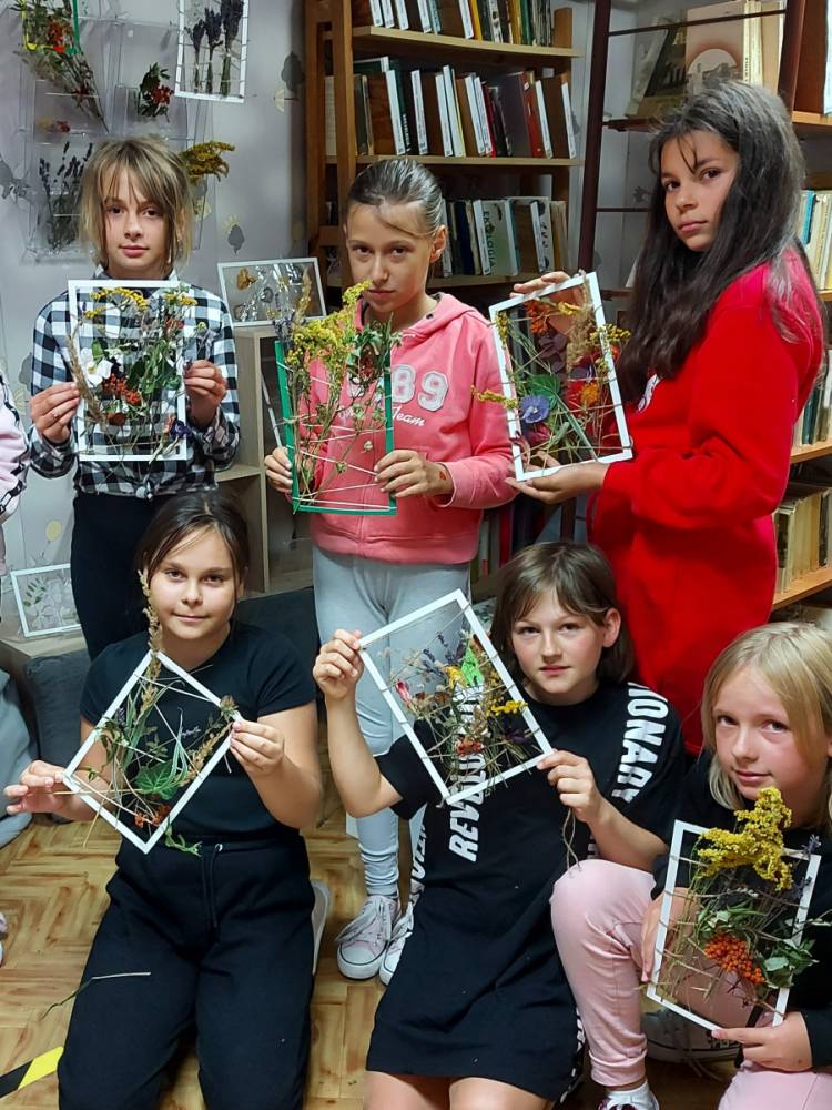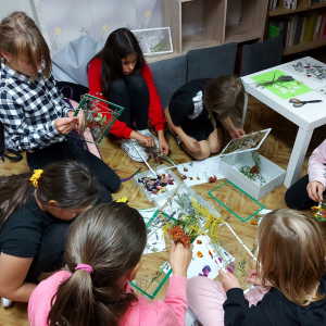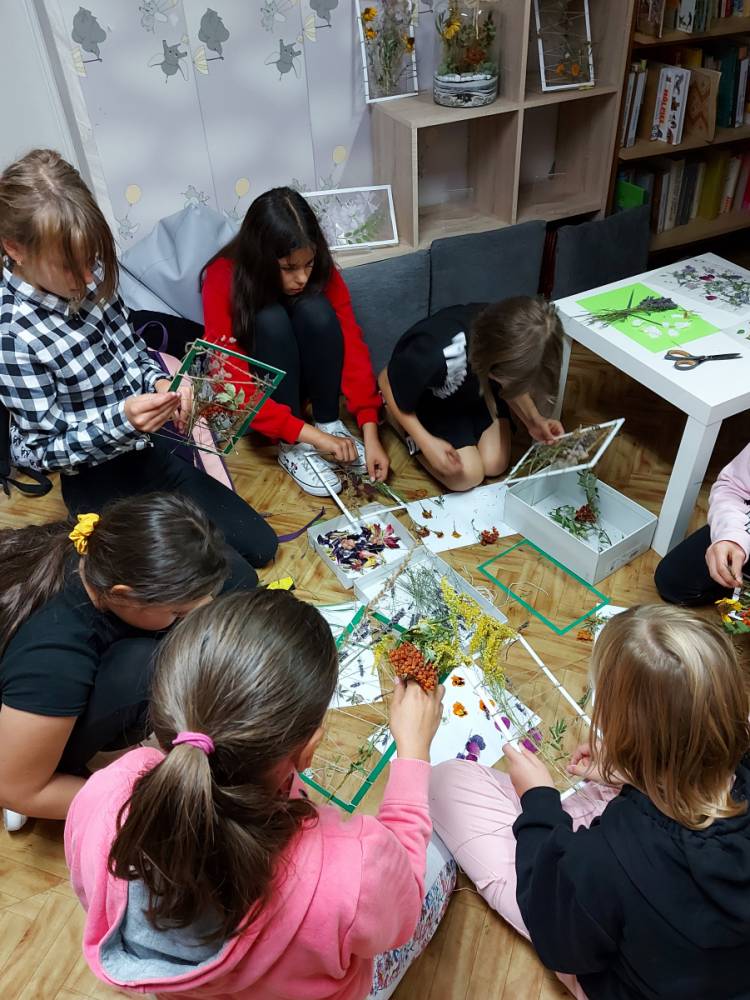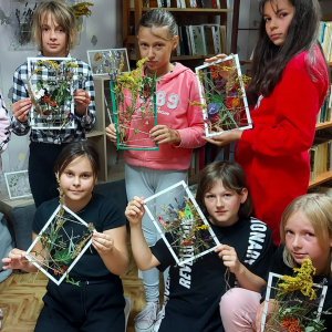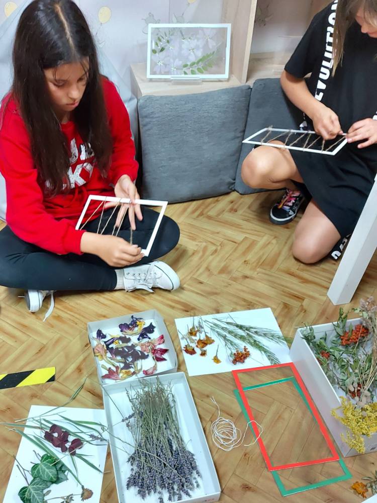 Przenieśliśmy się do świata natury, by znaleźć w nim zioła, kwiaty, trawy, liście krzewów i drzew, które - po ususzeniu - stały się przedmiotem naszych prac. Stworzyliśmy piękne witraże umieszczając wysuszone rośliny między sznurkami w ramce i laminowaliśmy wysuszone płatki kwiatów.