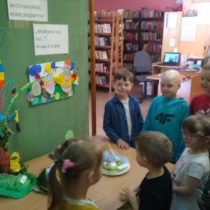 Wielkanocne prace plastyczne, których motywem przewodnim są pisanki, palemki, zajączki i kurczaczki.